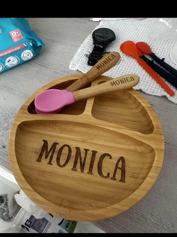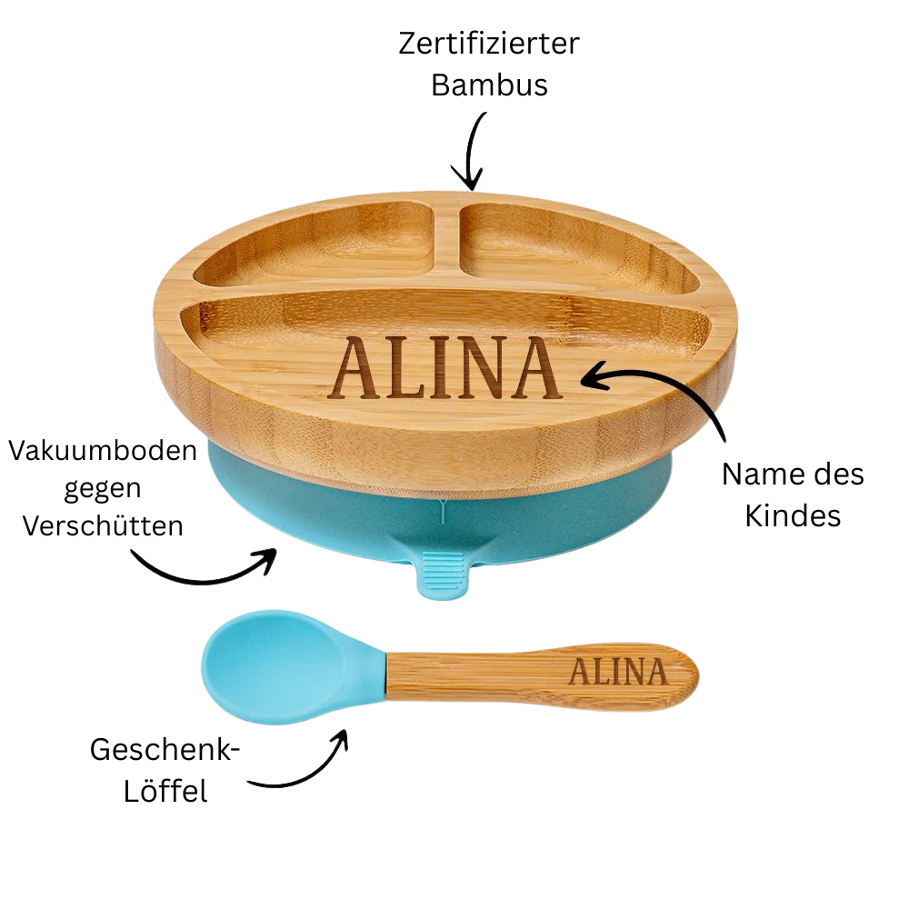 Personalisierte Bambusteller mit Löffel – Bebolino