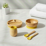 Der Vakuumboden der Schüssel und des Tellers „haftet“ am Tischchen des Kinderhochstuhls.